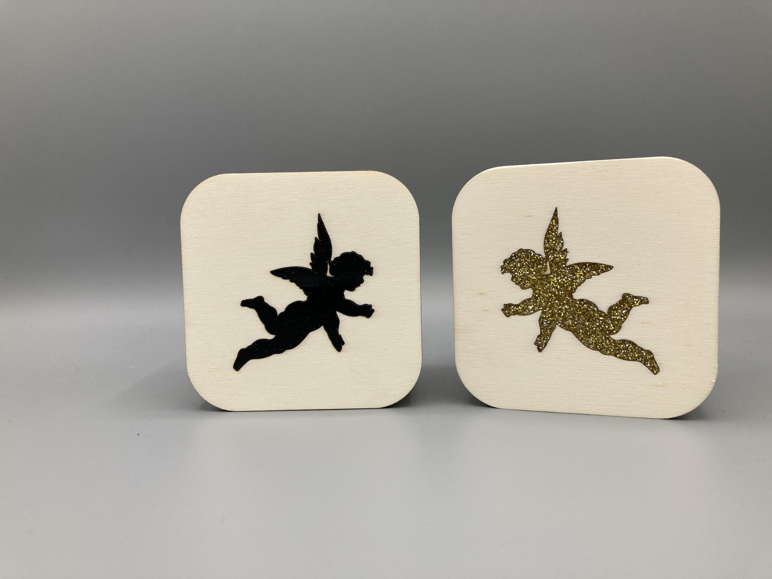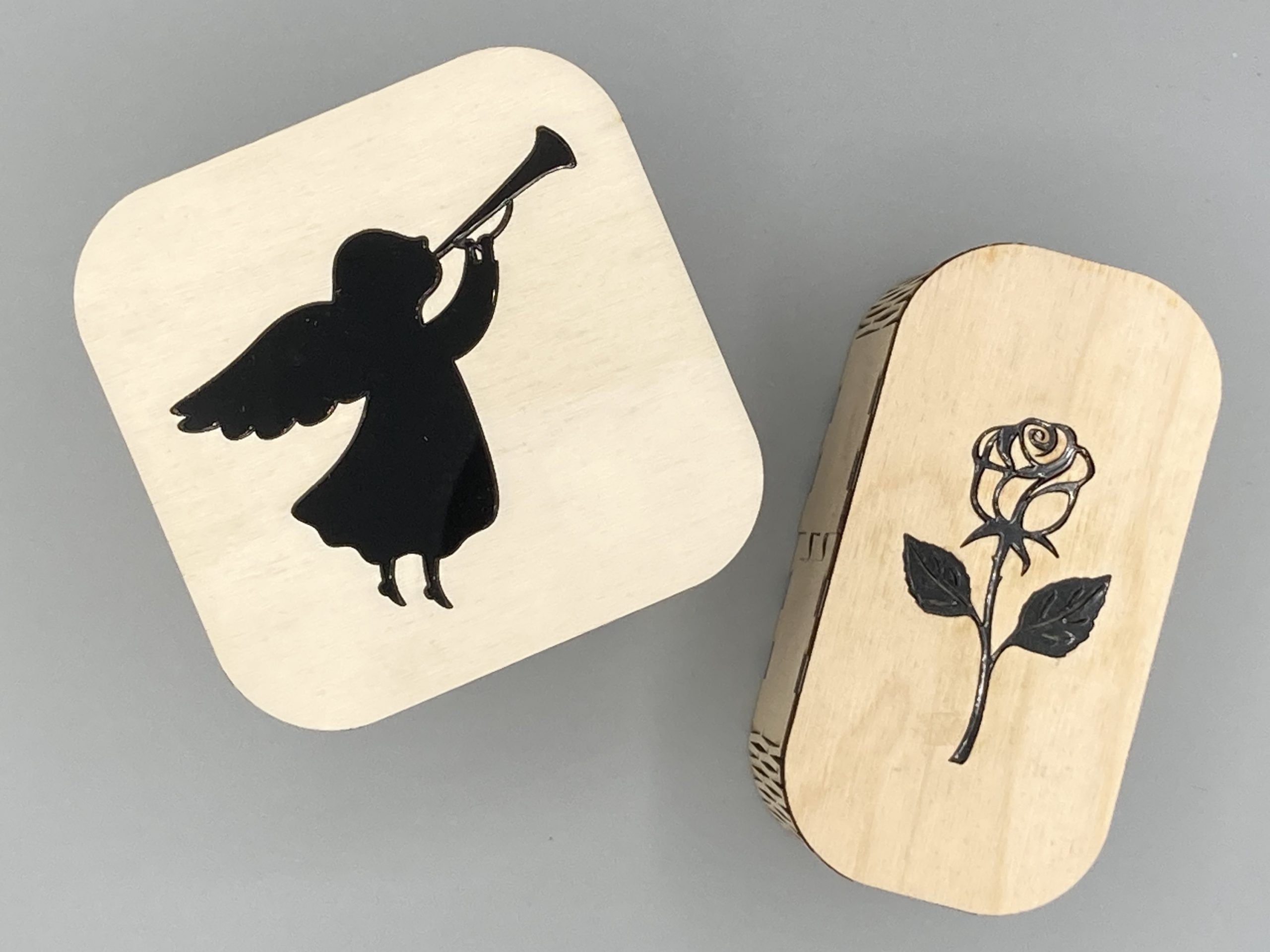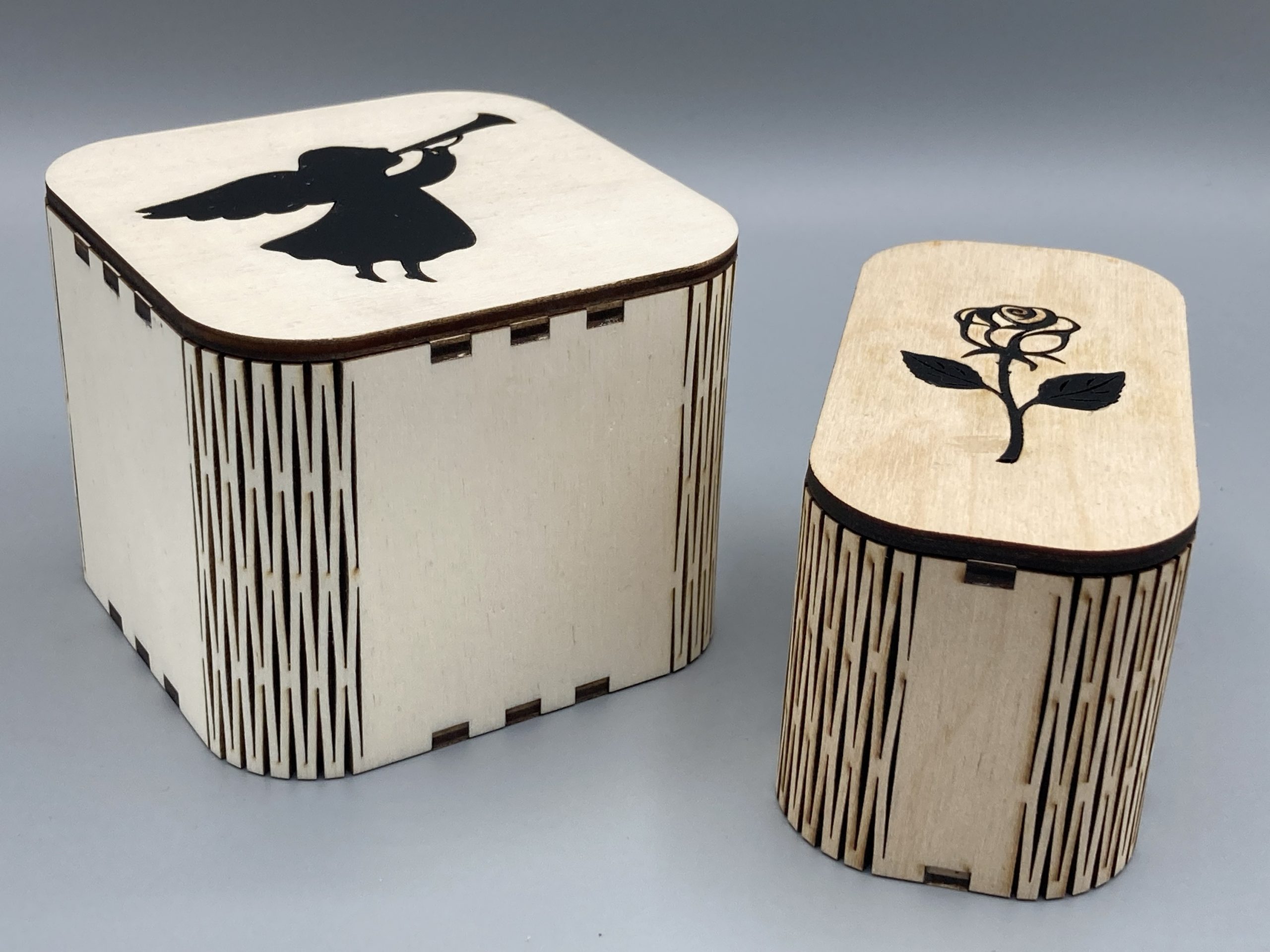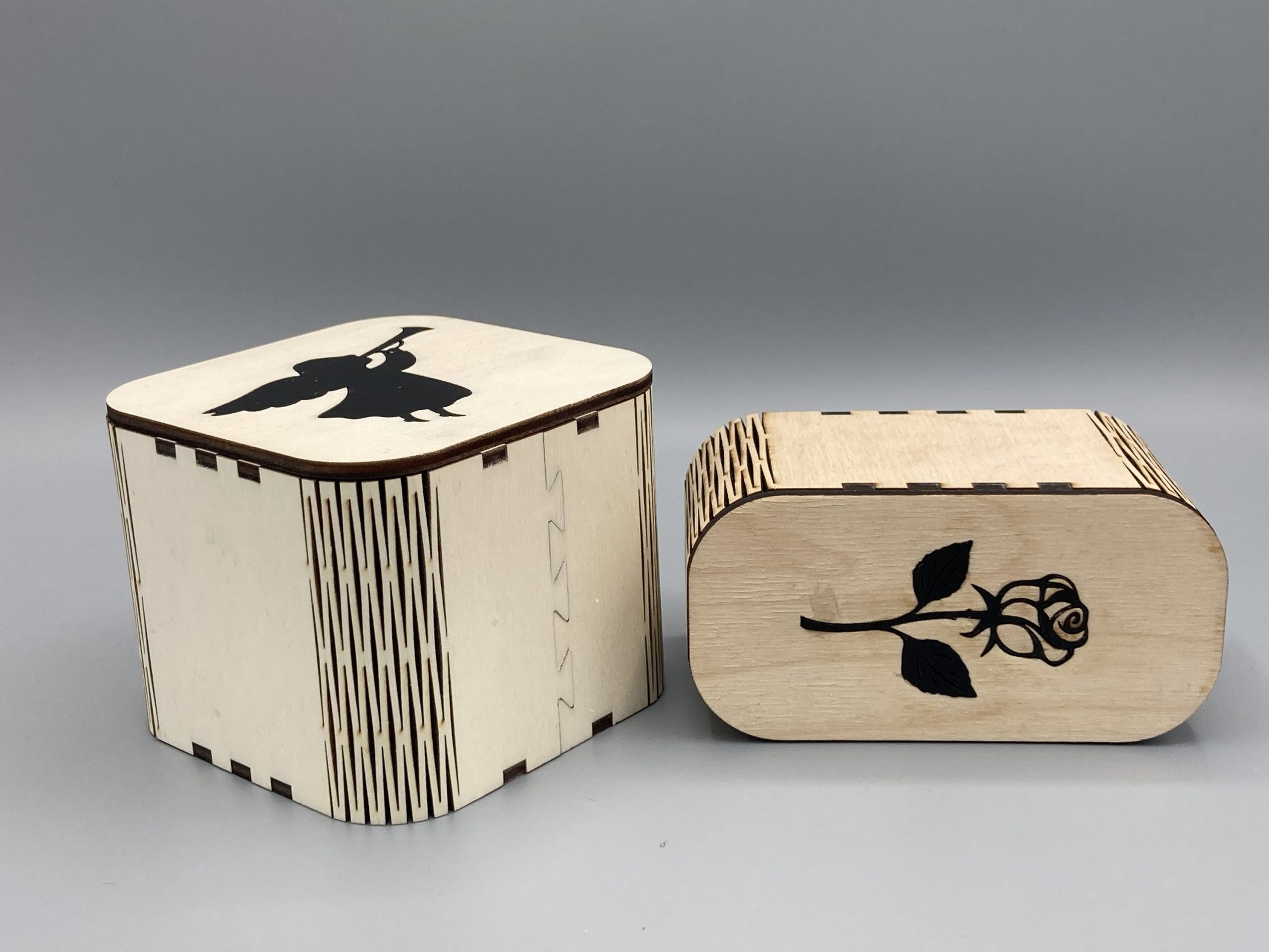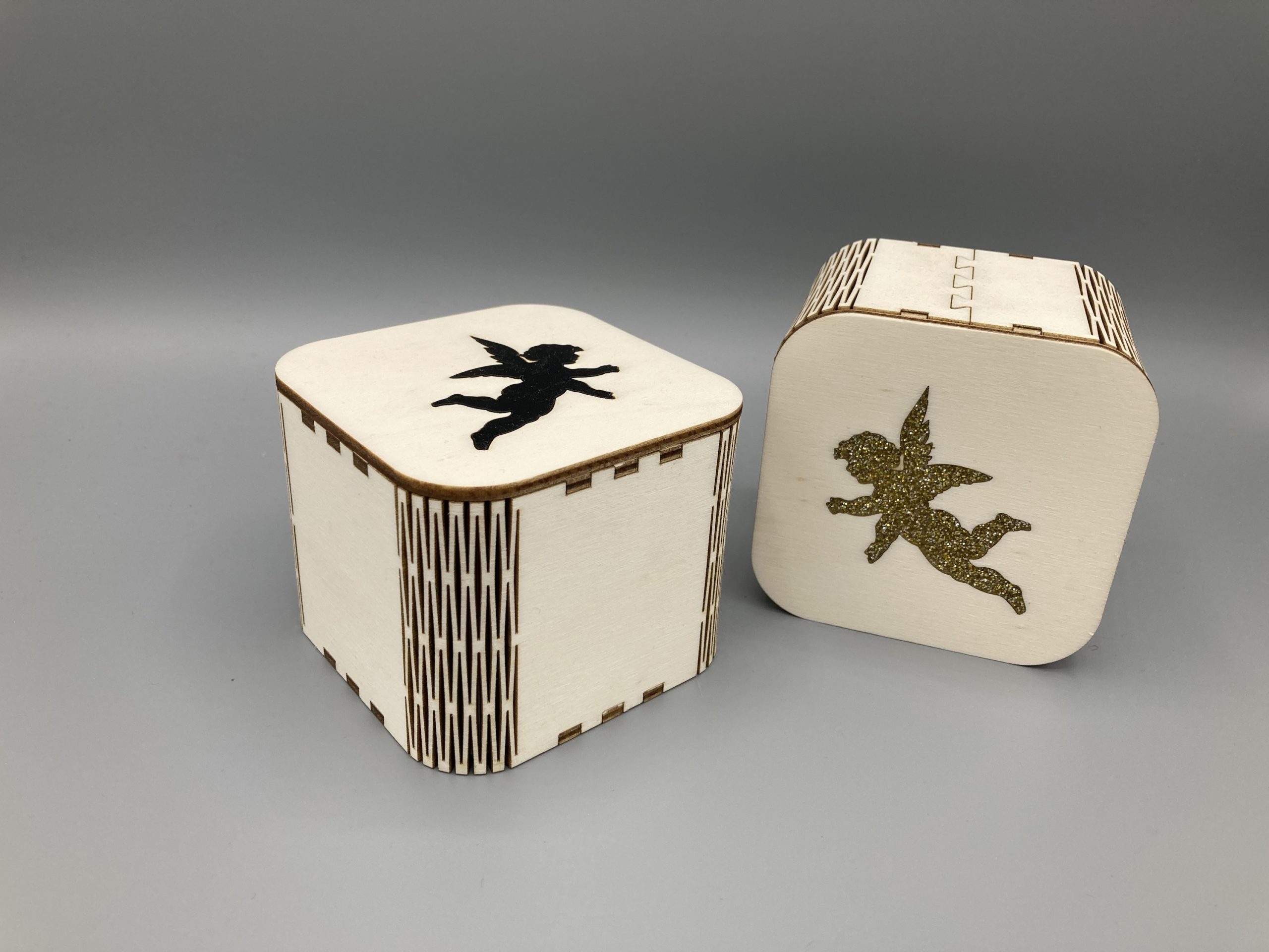 Geschenkbox mit Intarsien aus farbigem Plexiglas