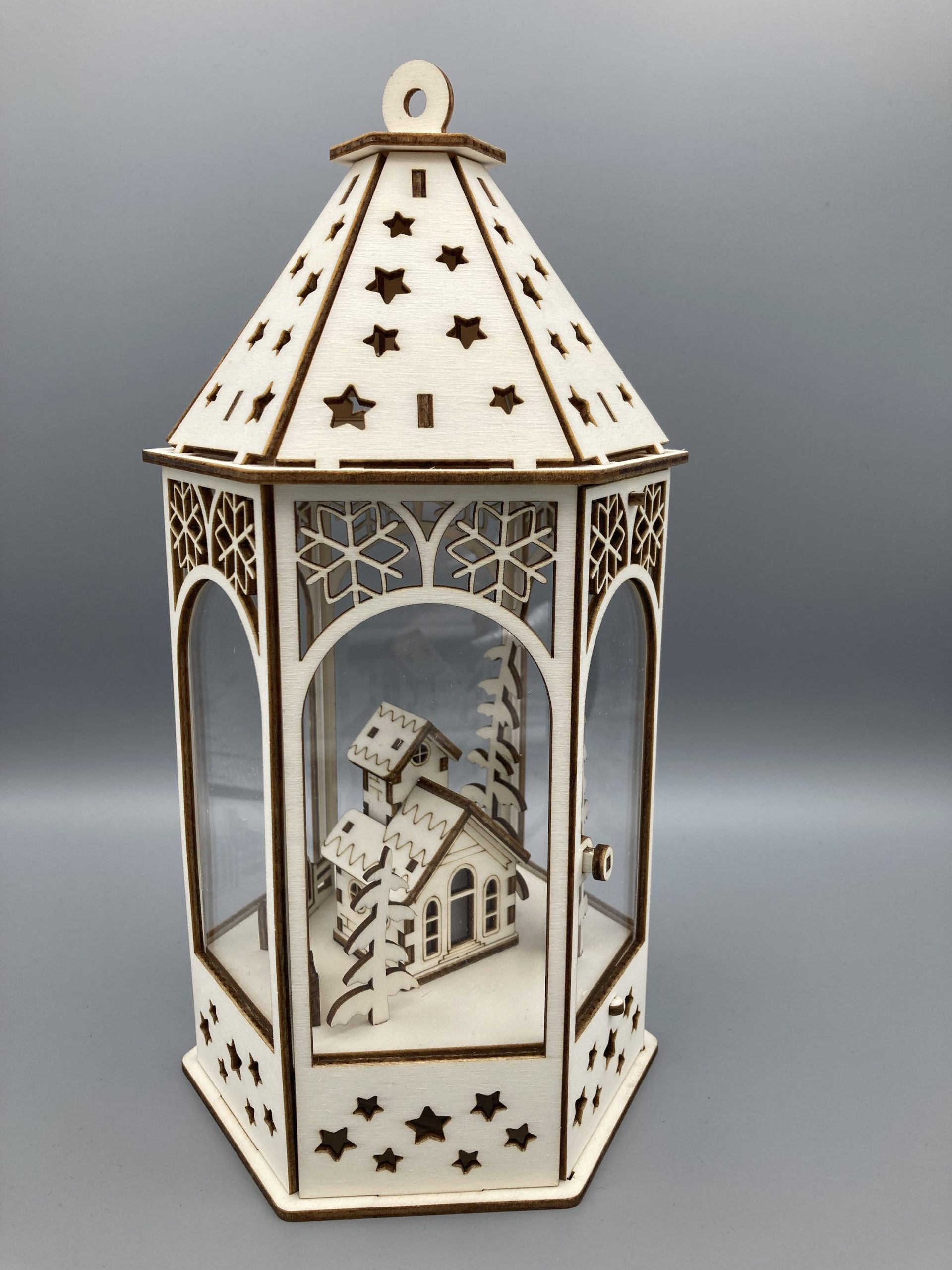 Die verbaute Lichterkette im Inneren der Laterne besitzt einen 6-Stunden-Timer.