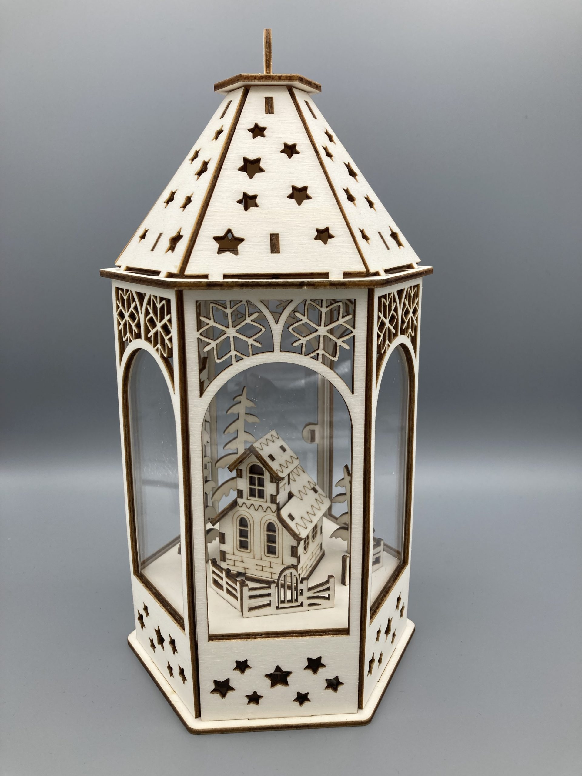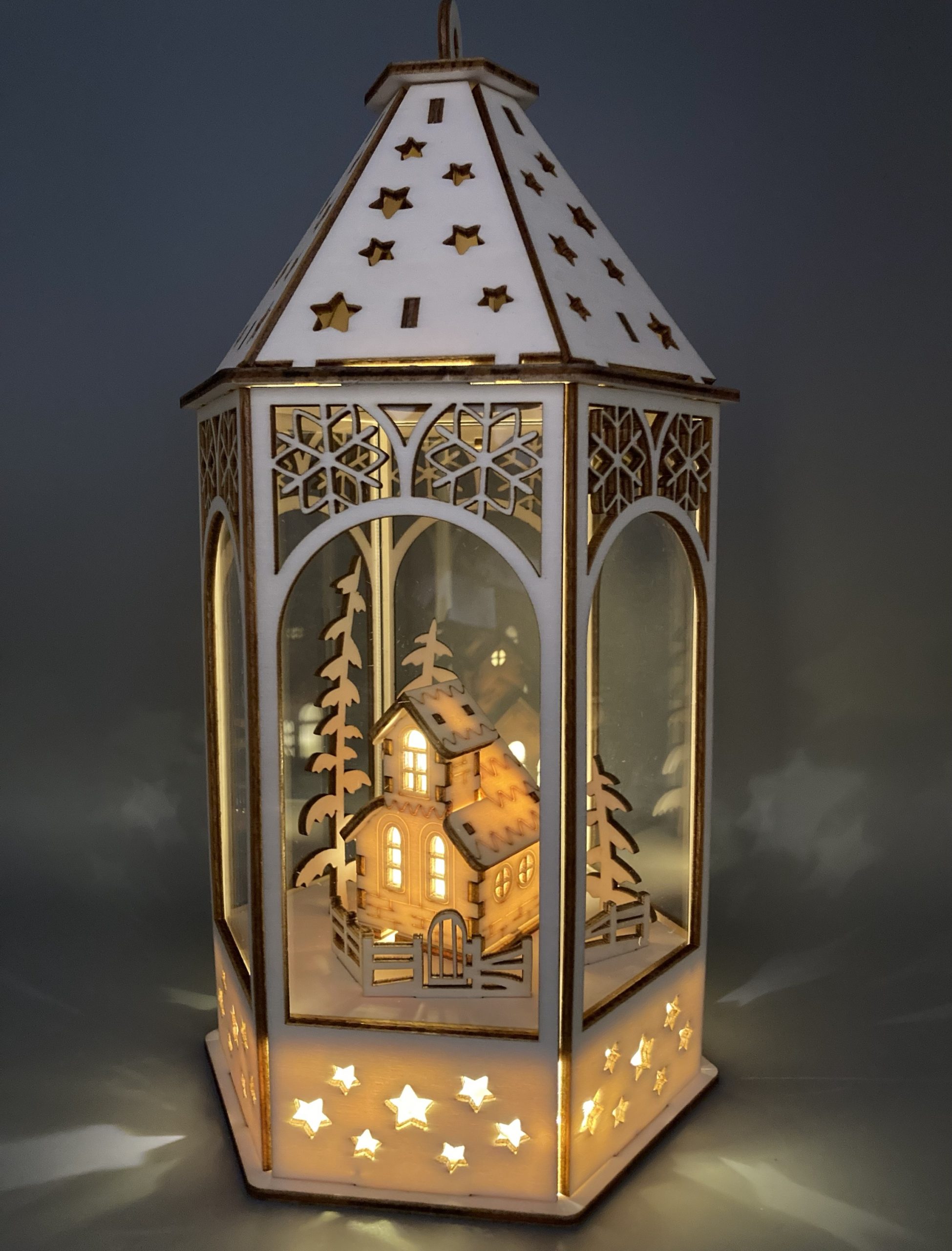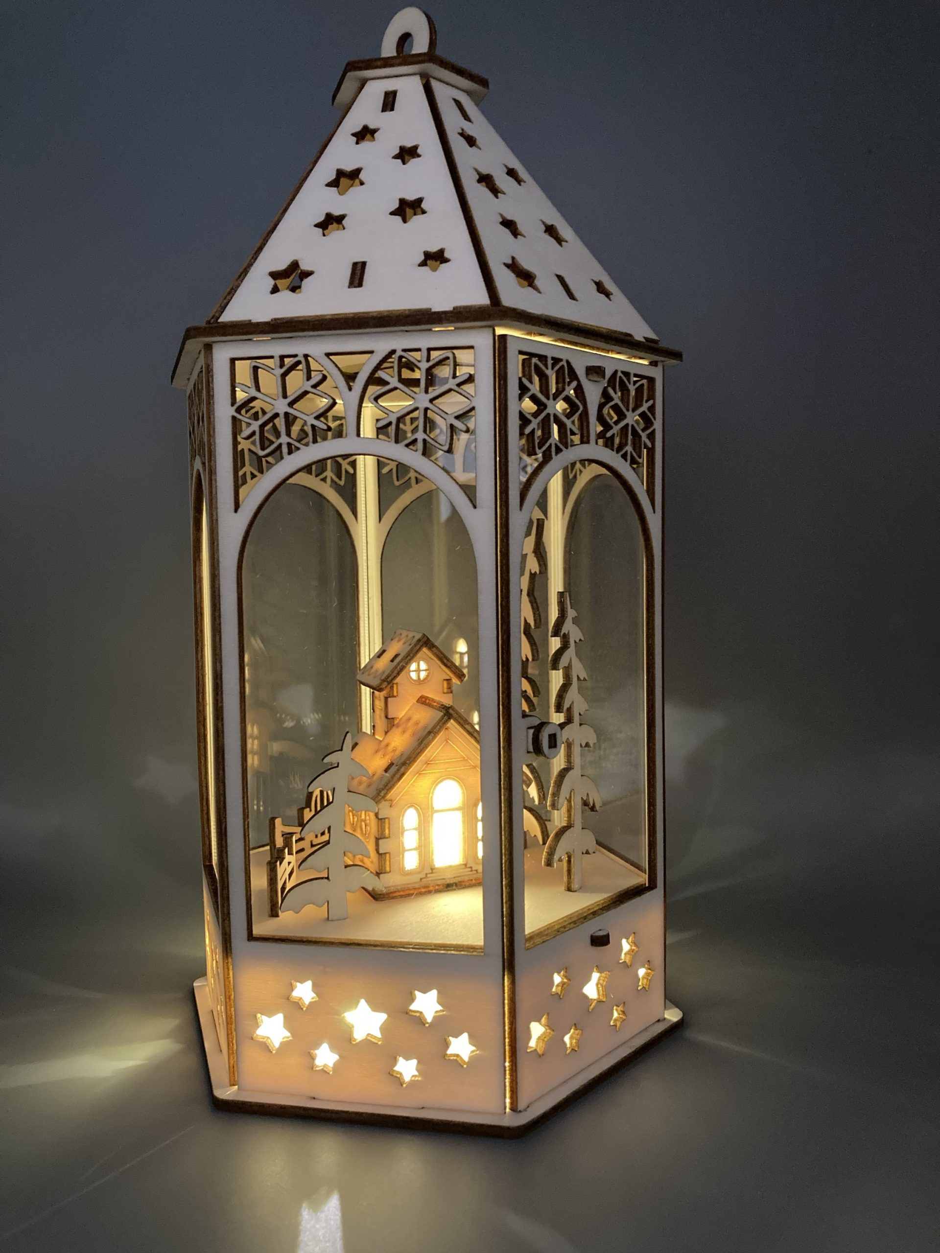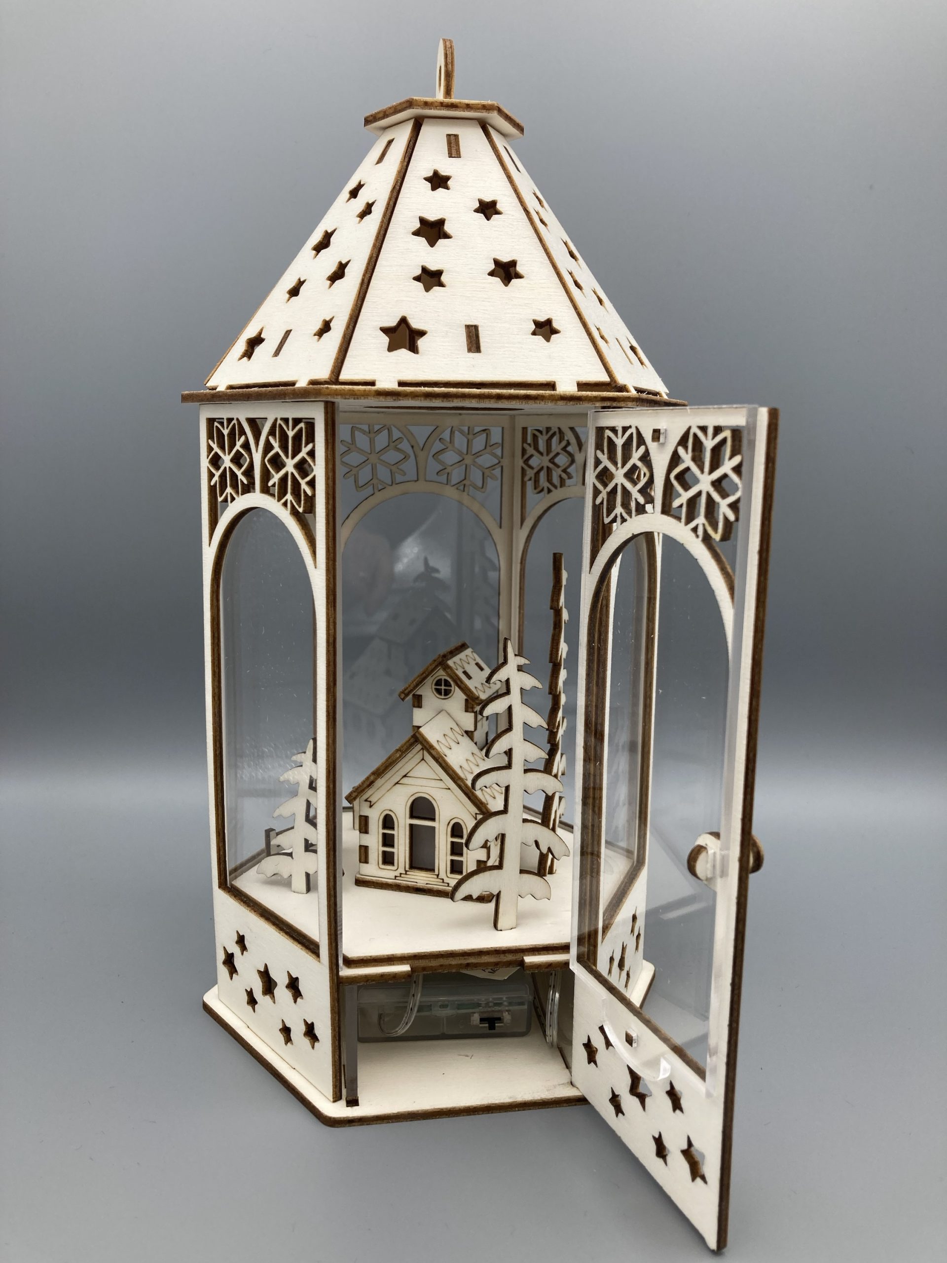 Die Laterne mit dem ansprechenden Kirchenmotiv hat Scheiben aus Acrylglas, welche das Produkt optisch abrunden.