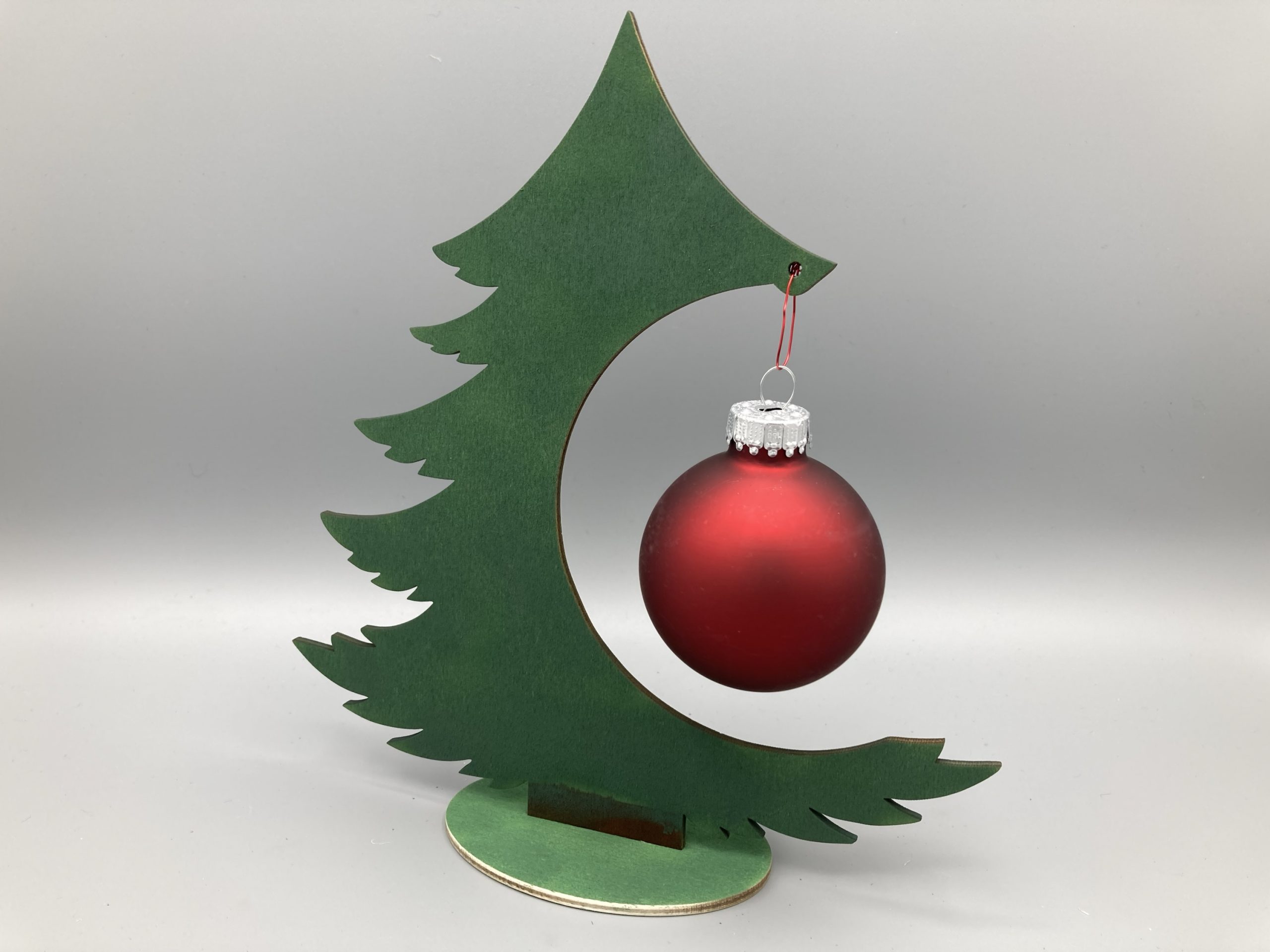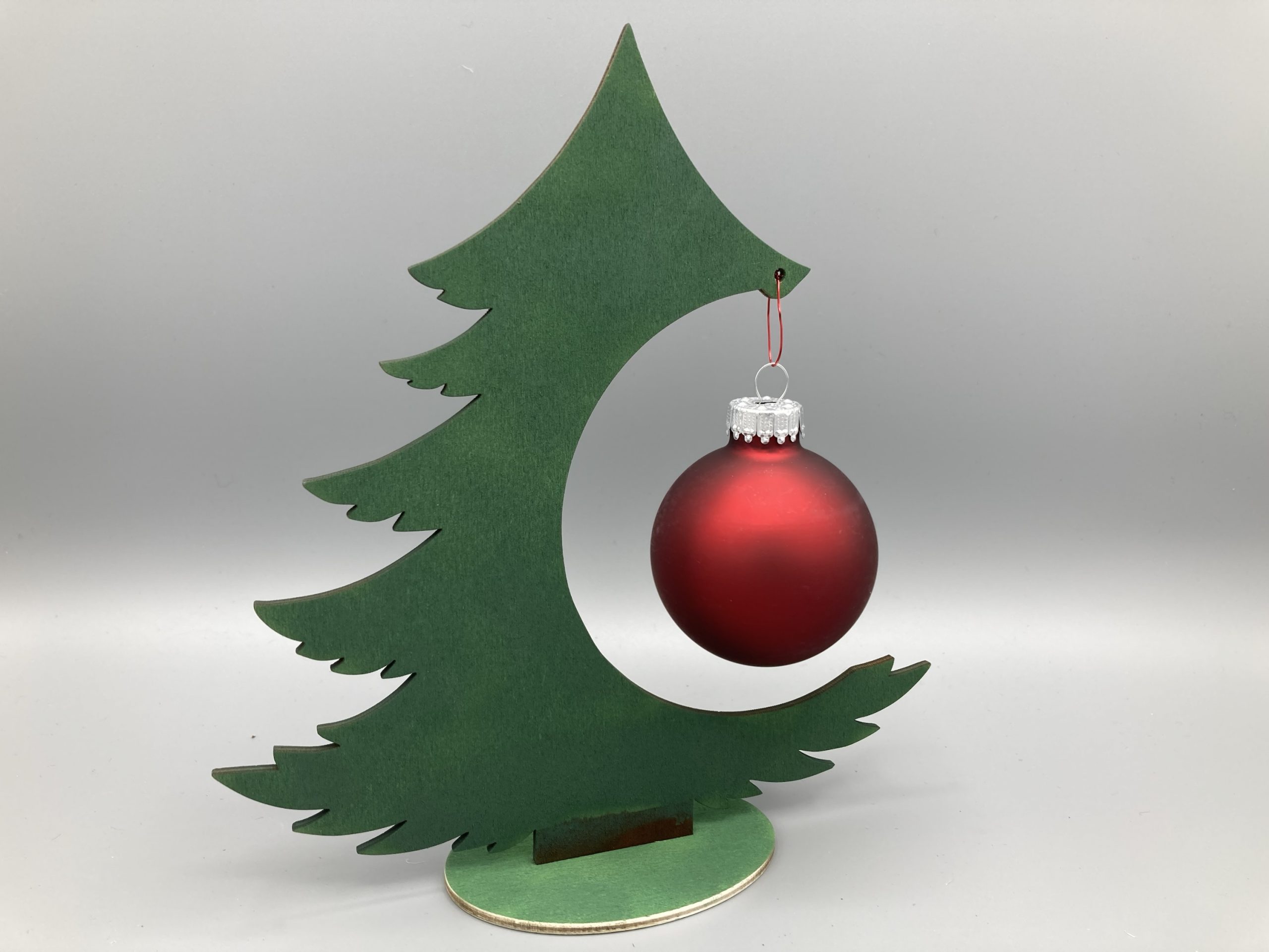 Tannenbaum aus Pappelholz mit Glas-Weihnachtskugel