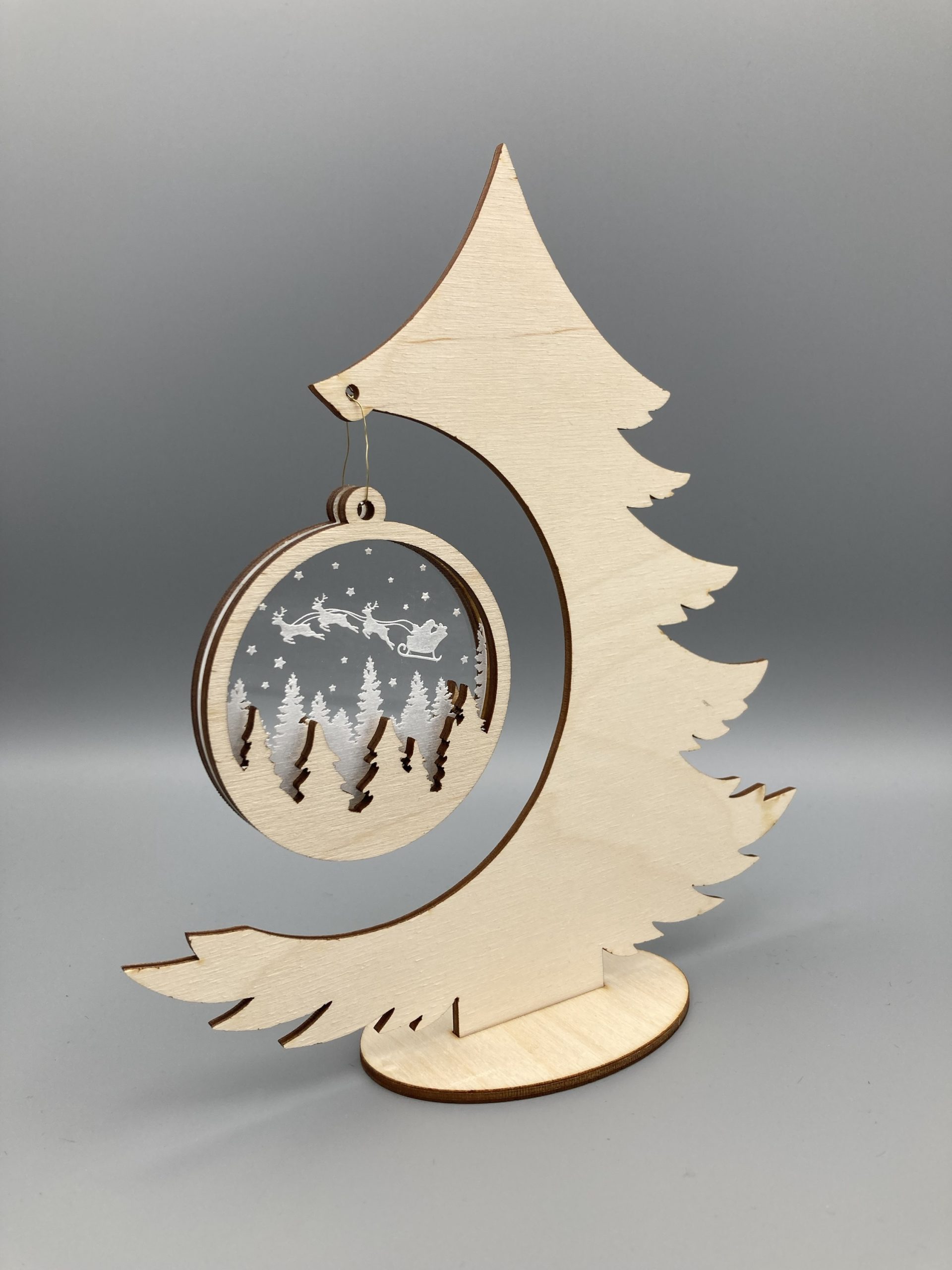 Tannenbaum aus Birkenholz mit Weihnachtsanhänger