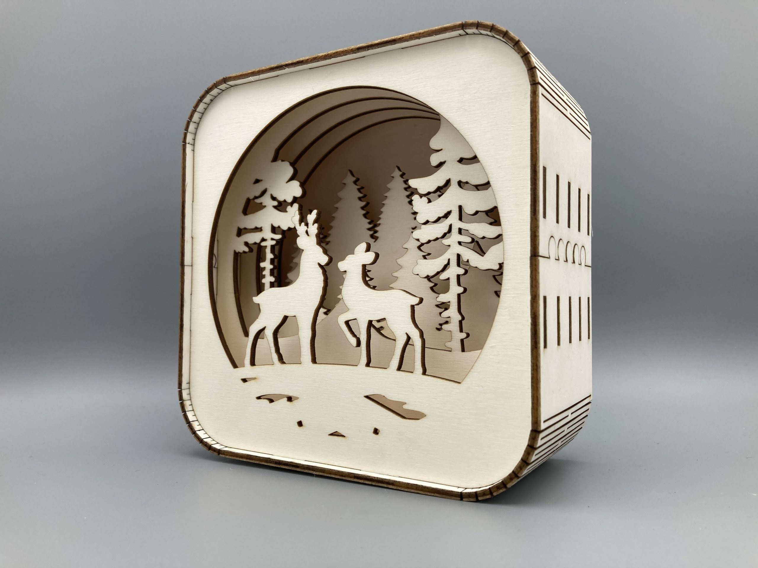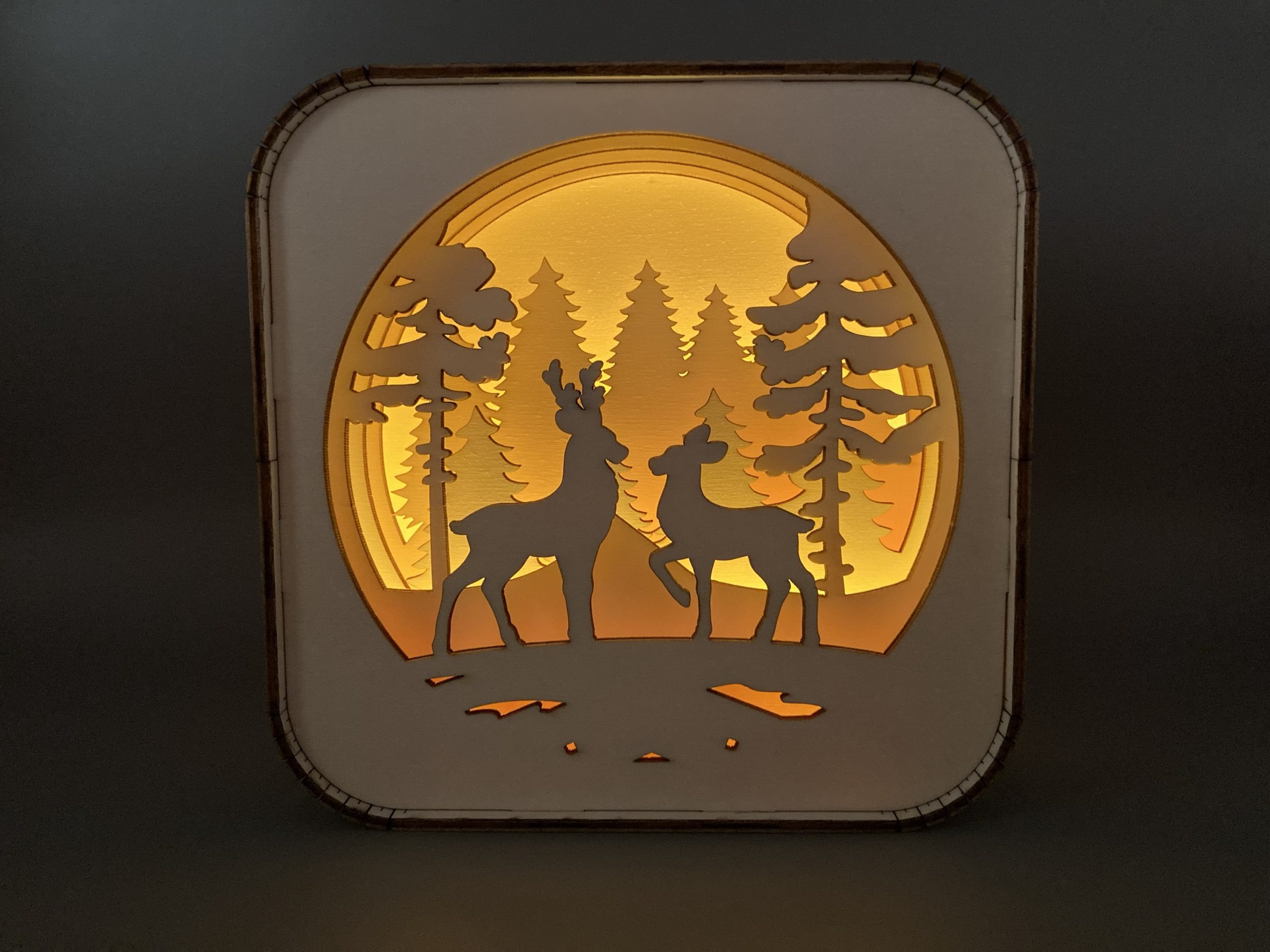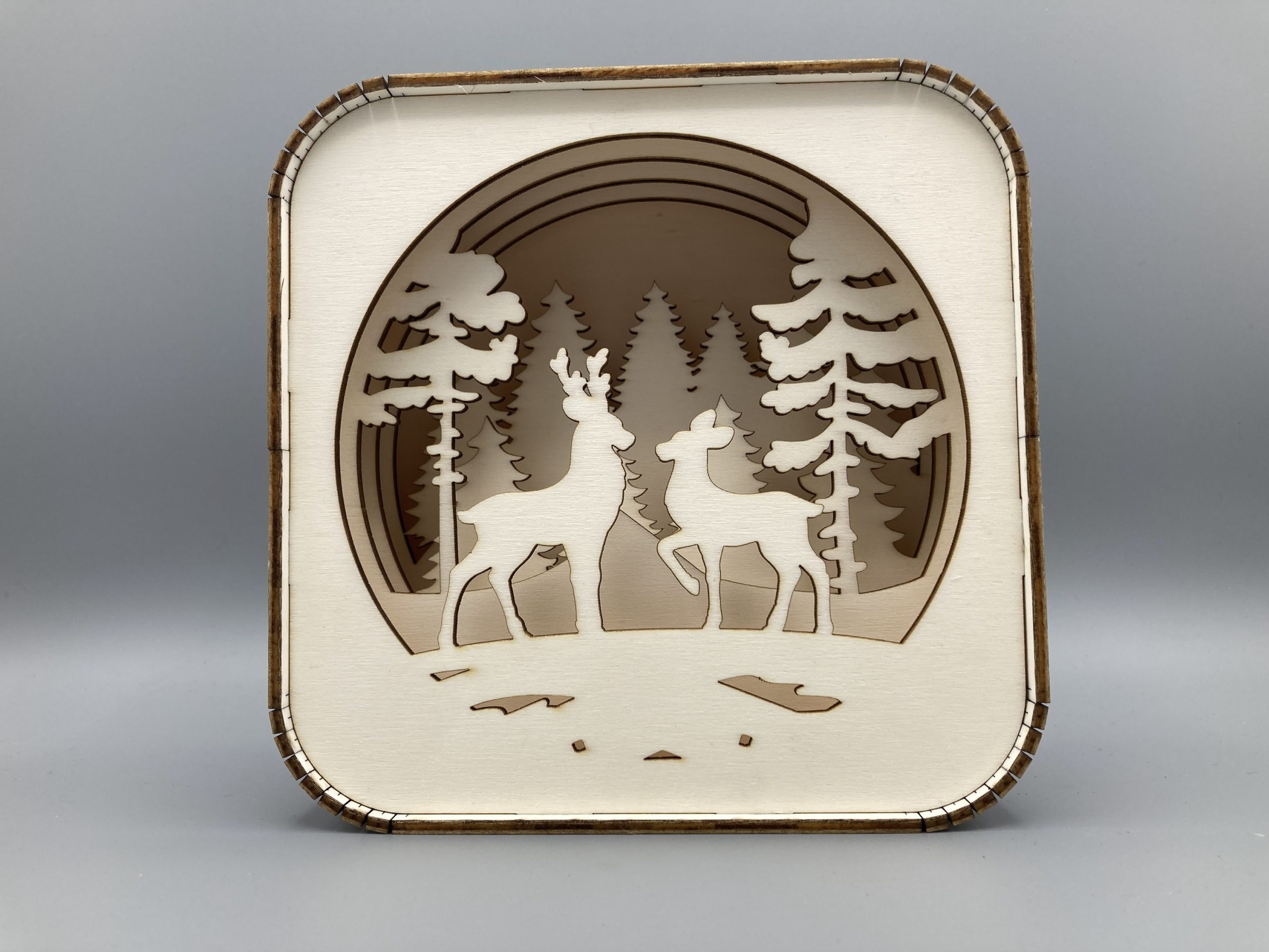 Weihnachtslicht / Nachtlicht mit Rehmotiv aus Pappelholz